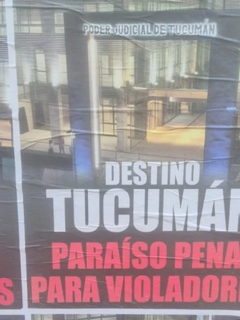 Distintos sectores céntricos de la Ciudad Autónoma de Buenos Aires amanecieron este lunes empapelados con llamativos afiches que exhiben la imagen de una dependencia del Poder Judicial de Tucumán y una dura consigna: "Destino Tucumán, paraíso penal para violadores".