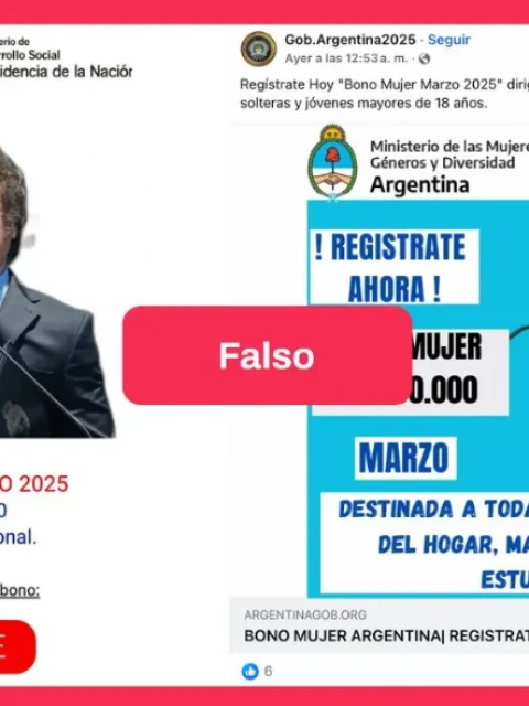 En Facebook y WhatsApp comenzaron a difundirse cadenas que promocionan un presunto "Bono Mujer" que el Gobierno nacional otorgaría en septiembre de 2025. Los posteos incluyen imágenes con logos oficiales y un enlace para inscribirse.