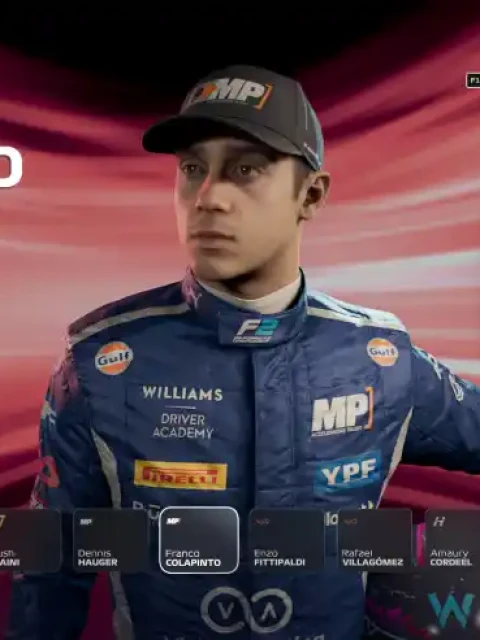 A través de la Carrera Profesional como piloto en F2. Lo bueno de este modo es que podés hacer que Franco se gane su puesto en la F1 al arrancar como piloto de F2 que busca subir de categoría. El proceso es bastante parecido al que te explicamos en el primer apartado de esta nota. Vas a tener que ir a Carrera Profesional como Piloto, seleccionar Empezar en F2, completar todas las configuraciones y ni bien entres vas a ver a Colapinto en la escudería MP Motorsport (división de Williams).