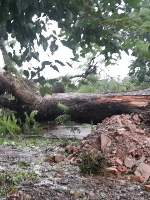 Cayó un árbol de gran porte por el temporal en El Chañar