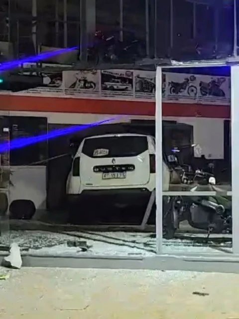 Chocó con un motociclista y se incrustró en una concesionaria