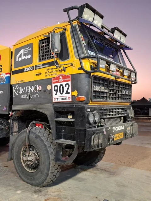 La tripulación polaca está conformada por Tomasz Bialkowski (piloto), Dariusz Bakiewicz (navegante) y Adam Grodzki (mecánico). En la tercera etapa de la categoría Classic, lograron un hito: por primera vez en seis ediciones, un camión lideró la clasificación general de su divisional. Actualmente, se ubican 11º en la clasificación total de su divisional y este viernes recorrerán 346 km de velocidad cronometrada y 537 km de enlace.