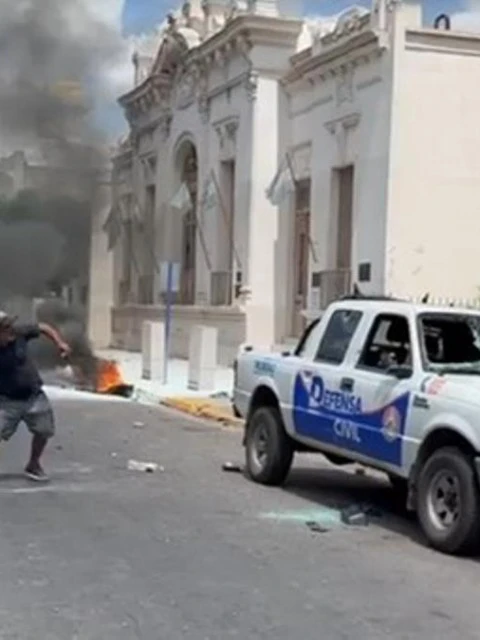Castro también detalló que se desplegaron entre 30 y 40 efectivos para resguardar la Municipalidad y proteger a los trabajadores. Aunque no hubo daños graves en el edificio, dos vehículos de Defensa Civil resultaron dañados por las piedras lanzadas por los manifestantes.