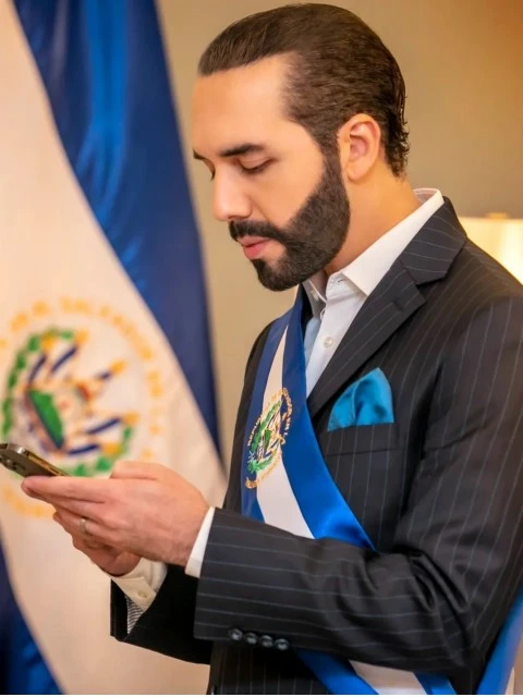 Nayib Bukele, presidente desde 2019, construyó una imagen pública que combina el carisma de un influencer con un control absoluto del Estado. Su discurso directo y provocador, difundido masivamente en redes sociales, lo llevó a autodenominarse "dictador cool" y "Philosopher King". Su política de seguridad, marcada por un régimen de excepción desde 2022, redujo notablemente los homicidios, pero también fue criticada por detenciones arbitrarias y violaciones a los derechos humanos.