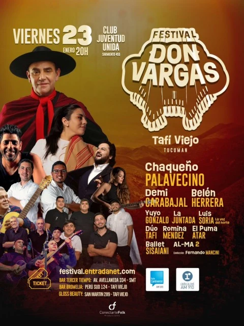 El próximo viernes 23 de enero, desde las 20 horas, Tafí Viejo vivirá una jornada especial con la realización del Primer Festival Don Vargas, una propuesta cultural que reunirá a destacados exponentes de la música y la danza folklórica en una noche pensada para celebrar las tradiciones y el sentir popular.