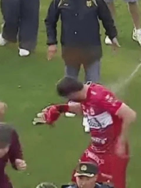 Terminó el partido y el conflicto escaló sin esperar un segundo, con Gastón González incontrolable buscando a los jugadores del Aurinegro sin poder ser contenido por sus compañeros. Dentro de la gresca generalizada, Germán Rivero, de Madryn, se peleó a golpes de puño con tres jugadores del Gallo a la vez mientras volaba patadas voladoras por todo el campo de juego.