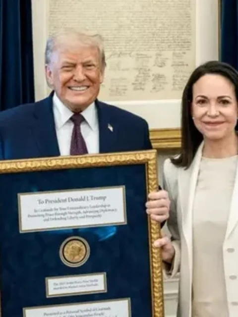"Doscientos años después, el pueblo de Bolívar le entrega al heredero de Washington una medalla, en este caso la medalla del Premio Nobel de la Paz, en reconocimiento a su extraordinario compromiso con nuestra libertad", añadió. A pesar de mantener reuniones tanto con el chavismo como la oposición, la ganadora legítima del Premio Nobel de la Paz apoya firmemente al presidente norteamericano, y dijo que los venezolanos pueden "contar con el presidente Trump".