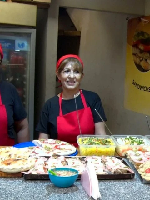 Otro puesto del patio de comidas del Mercado Dorrego venderá una tarta con gaseosa por $ 4.500; un calzón más la gaseosa a $ 5.000; 12 empanadas más gaseosa de un litro y medio a $ 13.000; 6 empanadas más 1/2 pizza y gaseosa por $ 12.500; dos napolitanas con guarnición y gaseosa por $ 18.000; pollo con guarnición a $ 7.000; quipe relleno con guarnición a $ 7.500; y la docena de empanadas o sfijas más una pizza especial y gaseosa por $ 21.500.