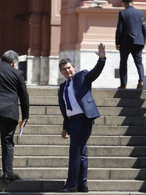 El gobernador de San Juan, Marcelo Orrego, llegó este lunes a la Casa Rosada para reunirse con el designado ministro del Interior, Diego Santilli, y el jefe de Gabinete, Manuel Adorni. En el encuentro, el mandatario destacó la importancia del trabajo coordinado entre Nación y las provincias, y aseguró que los gobernadores deben ser "los principales aliados" del presidente Javier Milei.