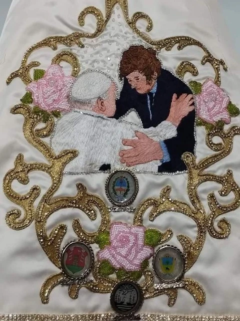 Polémica en Catamarca. Durante una misa, el obispo catamarqueño, Luis Urban, bendijo una réplica de la Virgen del Valle con una particularidad: tenía bordada las caras de Javier Milei y del Papa Francisco, más específicamente el abrazo de reconciliación entre ambos que se dieron en el Vaticano.