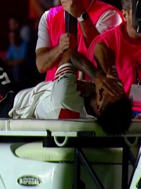 Preocupado y lagrimeando, Portillo se dio cuenta rápidamente de la gravedad de la lesión y tuvo que ser retirado del campo de juego, a pesar de que su equipo ya no tenía variantes, para luego abandonar la cancha con una férula que inmovilizaba la articulación.