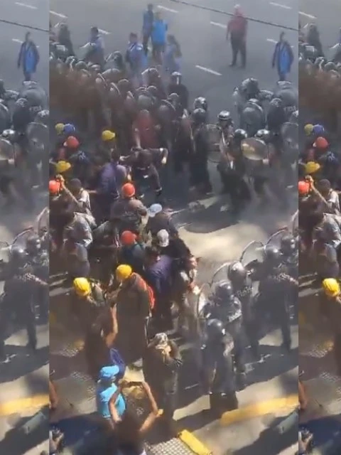 La policía avanzó sobre los manifestantes durante la protesta, generando un enfrentamiento en el que se utilizó la fuerza para dispersarlos.