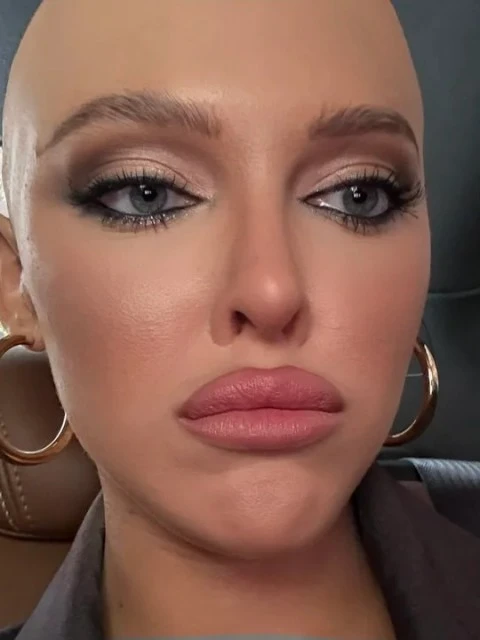 La tiktoker se mostró con una prótesis que simula estar pelada y un maquillaje que realza su rostro, generando furor en redes.