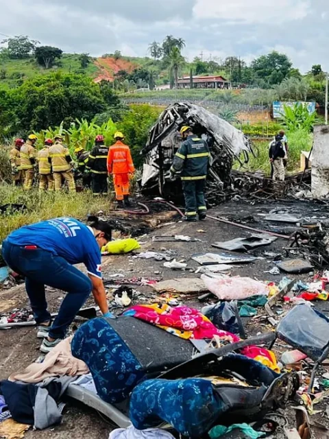 En la madrugada de este sábado, un fatal accidente en la autopista BR-116, a la altura de Teófilo Otoni, Minas Gerais, dejó al menos 38 muertos. El autobús, que partió de São Paulo rumbo a Jequié, Bahía, sufrió el reventón de un neumático, lo que provocó que invadiera el carril contrario y chocara contra un camión cargado de piedras.