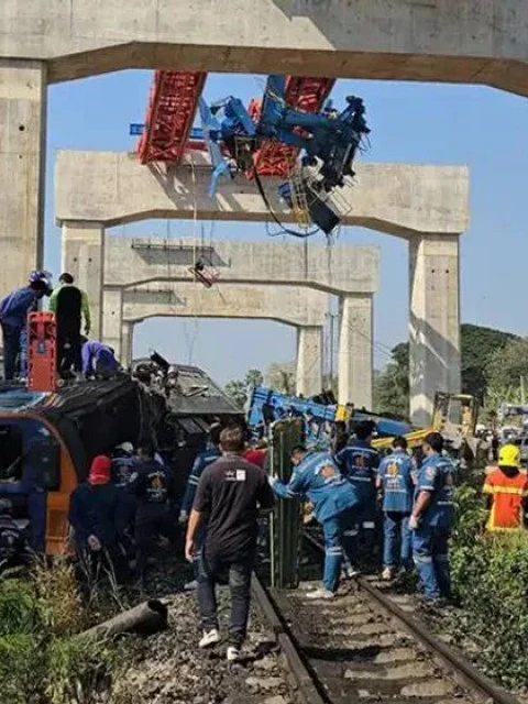 Tragedia en Tailandia: una grúa cayó sobre un tren y dejó decenas de muertos y heridos