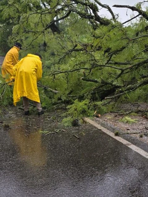 Por otro lado, en la Ruta 304, los equipos de trabajo se centran en la limpieza de la calzada, especialmente en áreas afectadas por material arrastrado por el arroyo Pujio y en los alrededores de Los Pomelos.