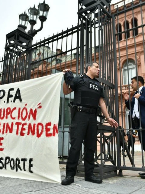 Un cabo de la Policía Federal Argentina (PFA) protagonizó este miércoles una protesta inusual frente a la Casa Rosada al esposarse a las rejas del edificio en pleno centro porteño. El efectivo, identificado como Miguel Montiel, reclamó por mejoras salariales y denunció presuntas irregularidades dentro de la fuerza.
