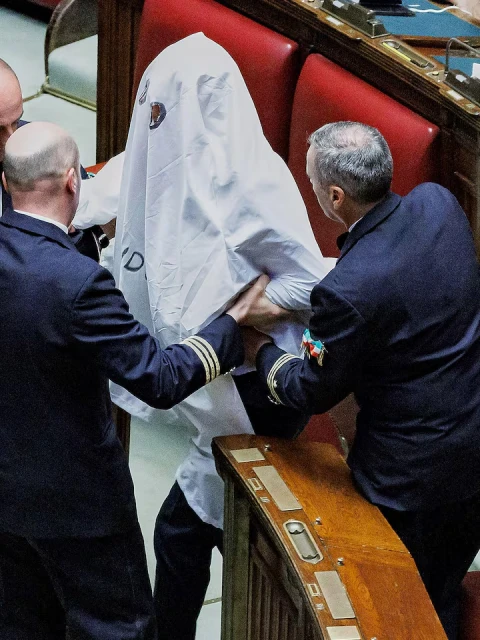 Un insólito momento se vivió este miércoles en el Parlamento italiano, cuando el diputado Riccardo Magi, del partido Más Europa, fue expulsado del recinto tras protestar disfrazado de fantasma con una sábana blanca.