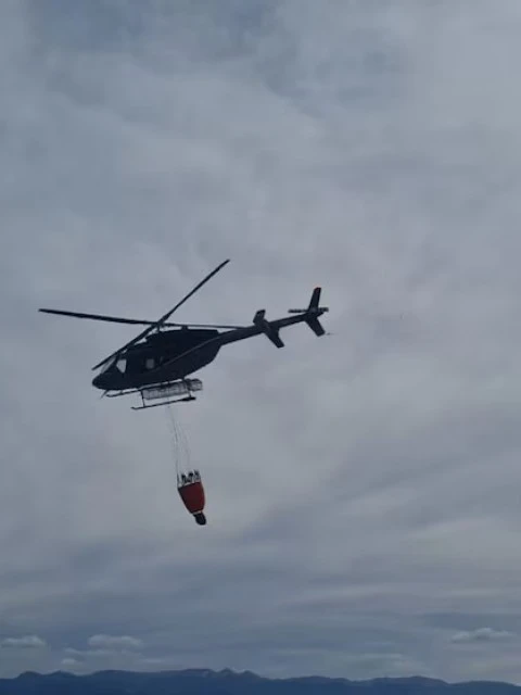 Desde la Agencia Federal de Emergencias (AFE) informaron que colaboraron con un helicóptero equipado con helibalde para reforzar las tareas de combate. El avance del fuego entre sectores poblados obligó a extremar las maniobras de control y enfriamiento, priorizando la protección de viviendas y personas.